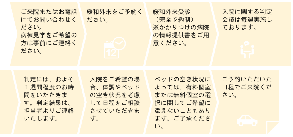 - 患者様とご家族が緩和ケア病棟への入院を希望していること。