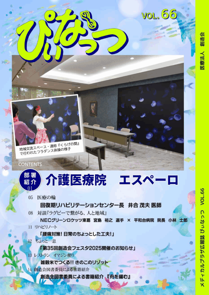 1986年の開院より発行している広報紙です。創造会の理念や運営方針の周知、事業活動の紹介などを、患者さま、ご家族、地域の皆様への情報提供媒体として作成しております。ぜひご一読ください。