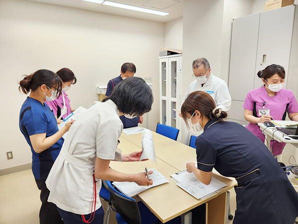 当院のNSTは医師・看護師・薬剤師・管理栄養士・臨床検査技師・リハビリスタッフで構成され、週1回のラウンドと年1回勉強会を実施しています。それぞれの専門性を活かして、対象患者様の栄養状態改善に励んでいます。