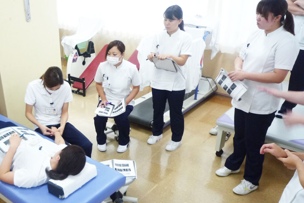 - 上期(4月~9月):病棟や運営に関するオリエンテーション、基本動作の介助方法、触診や運動学など
