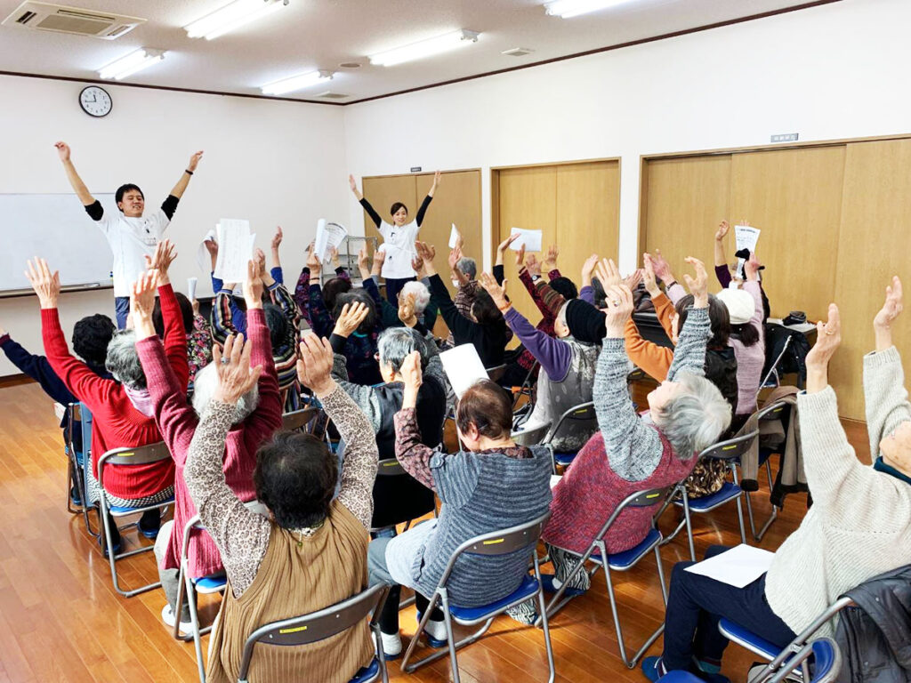 地域の方々の健康増進や健康寿命の延伸、地域のコミュニティー作りを目的に月1回開催しています。毎月内容を変更し、リハビリテーション専門職による講義や運動指導、集団体操、レクリエーションなどを地域住民の方々と楽しく行っています。