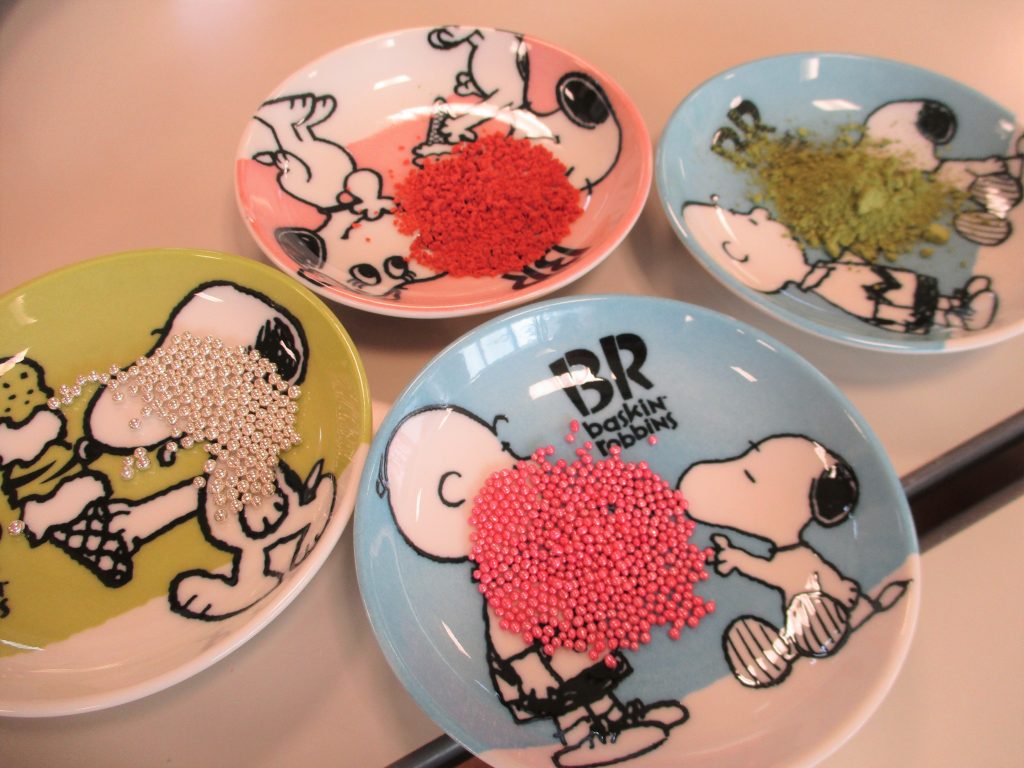 トッピングには、アラザン、ストロベリーパウダー、抹茶パウダーの4種をご用意。