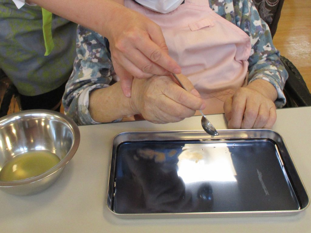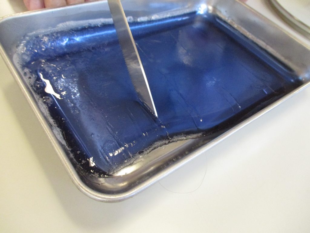 これをゼリー液に混ぜたら、2つのバットに流し入れます。
