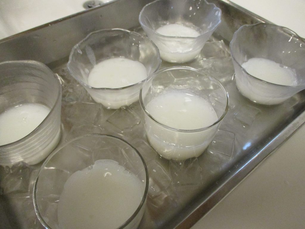こちらを冷蔵庫で冷やしている間に、本体部分のカルピスゼリーを同じような工程で作っていきます。