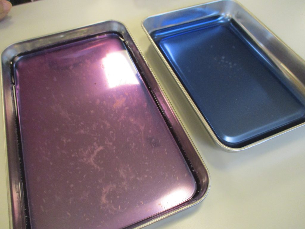 レモン汁を片方のバットに数滴垂らすと…