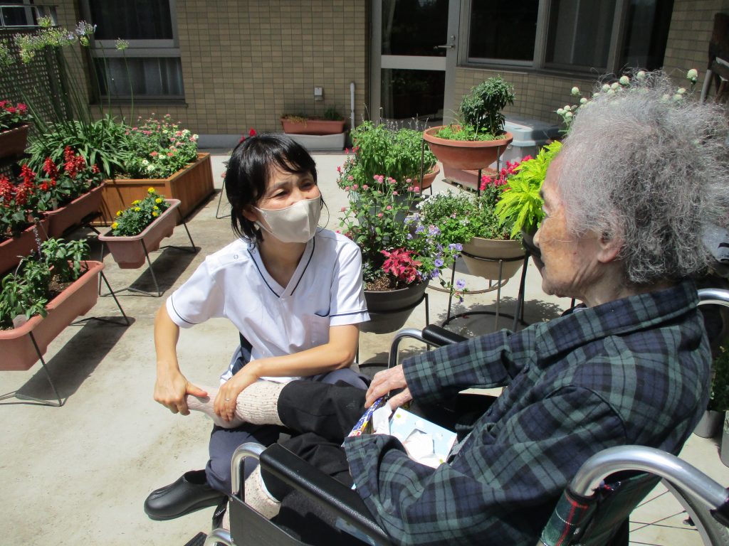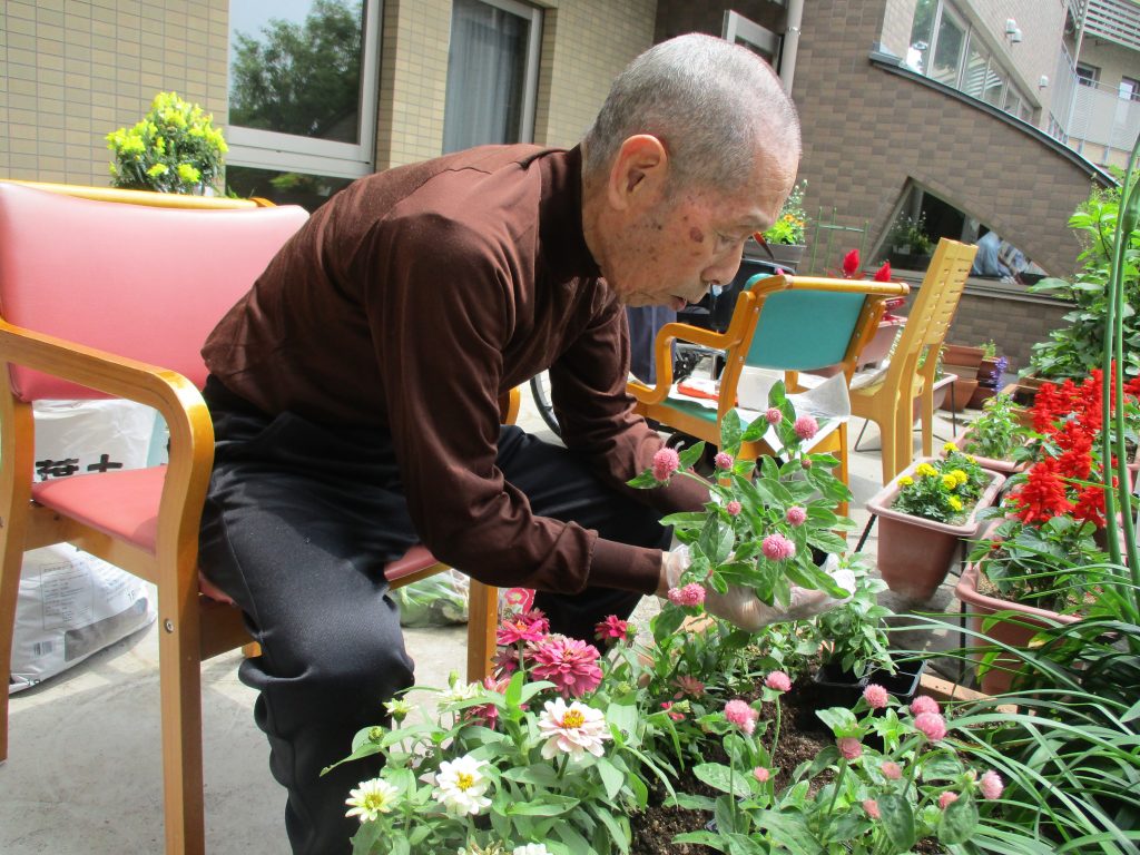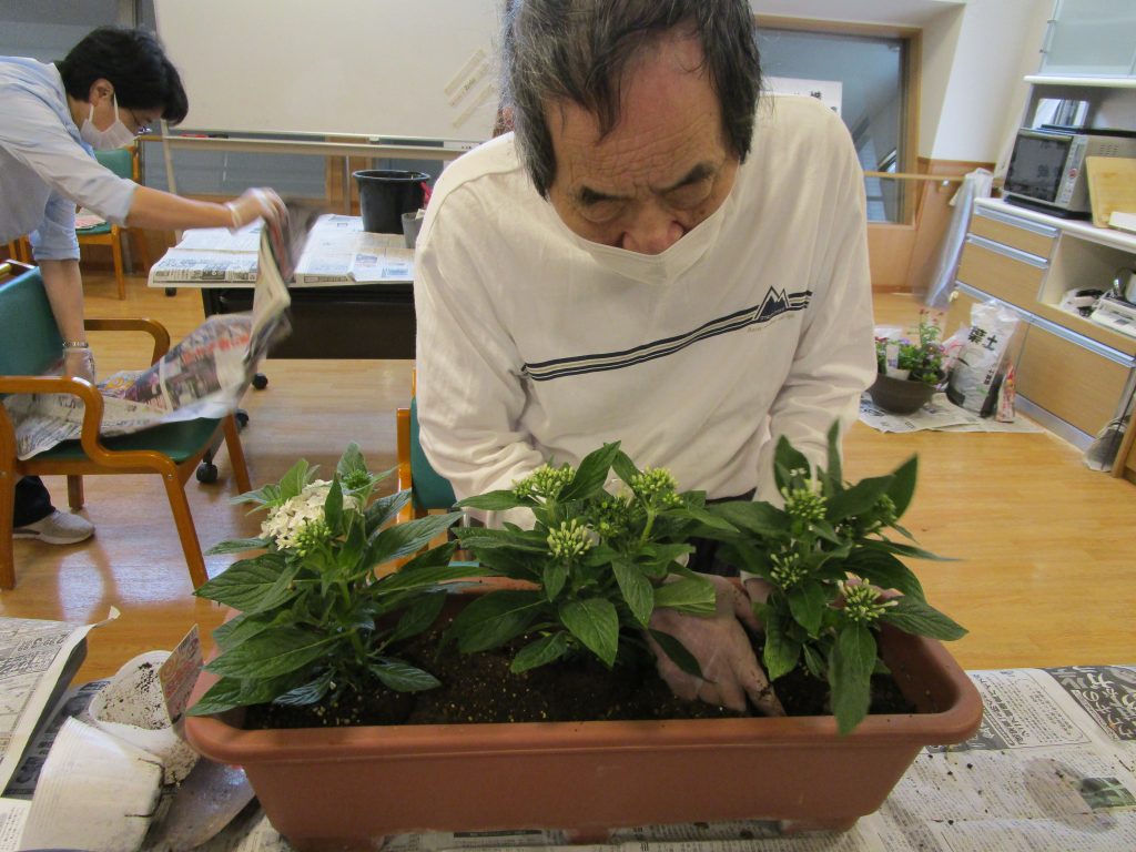 驚異的な暑さが続いていますが、お花たちにも暑い夏を乗り切ってもらうため、水やりを頑張ります!! 次回は3階入所者様の植え付けの様子をご紹介したいと思います♪
