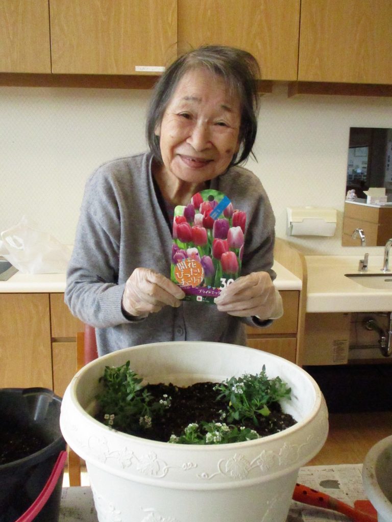 昨年の11月に園芸クラブとして、利用者様と一緒に植えたお花です。