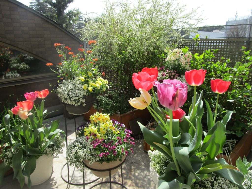 あたたかくなり、2階のベランダの花も今が見頃を迎えました。