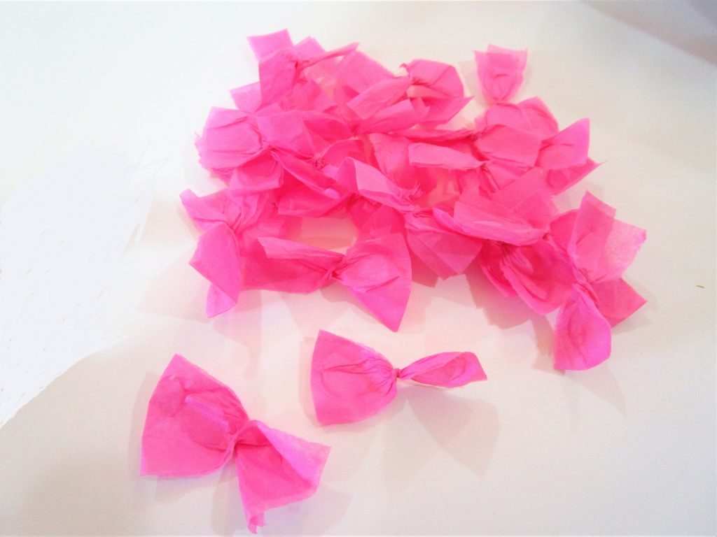 まずは小さく切った千代紙を折って、藤の花びらになる部分を作っていきます~!