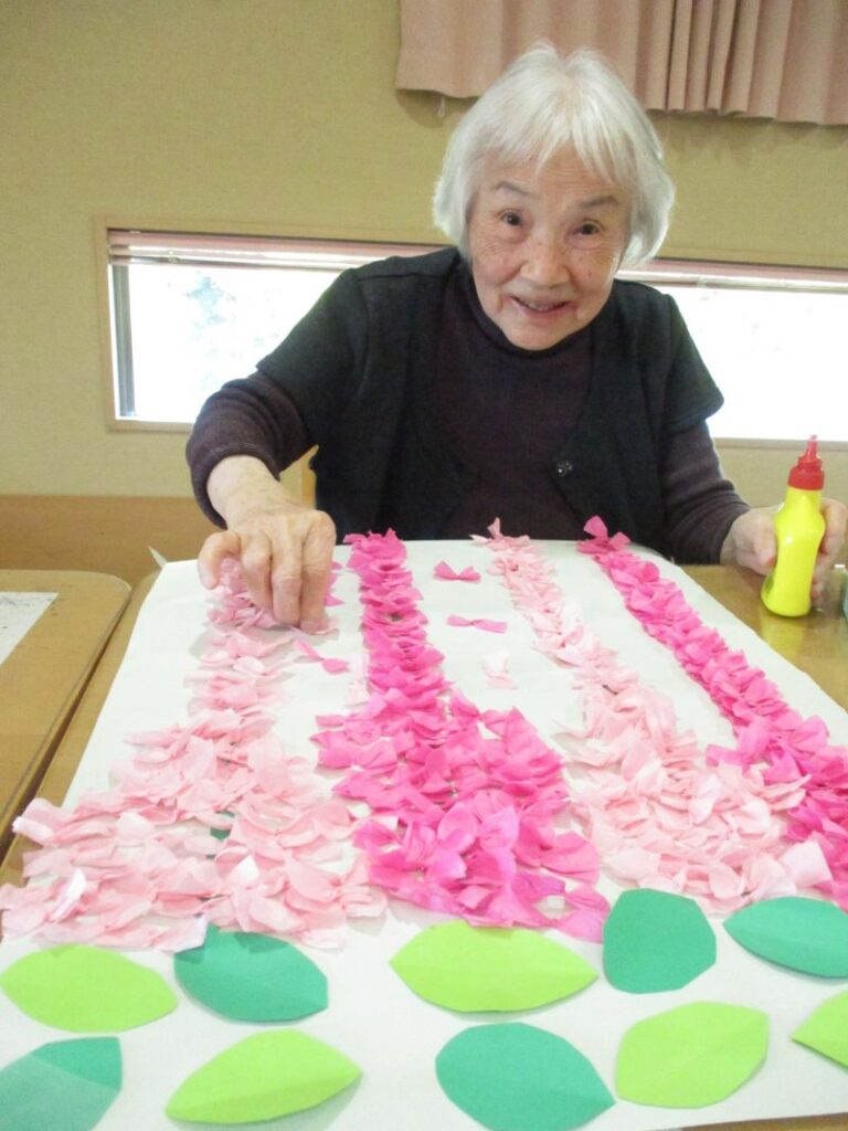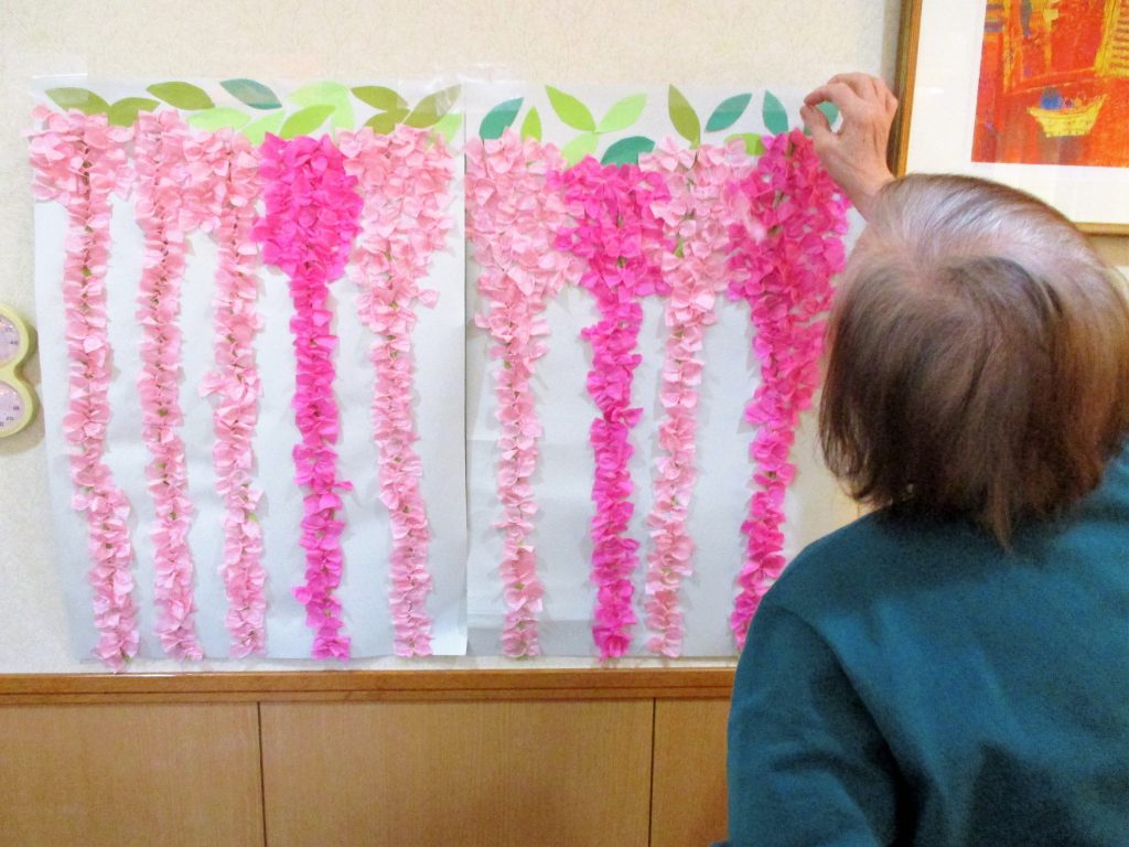 今回は3階フロアの皆さんによる藤棚の貼り絵作りの様子をお届けします(^^♪