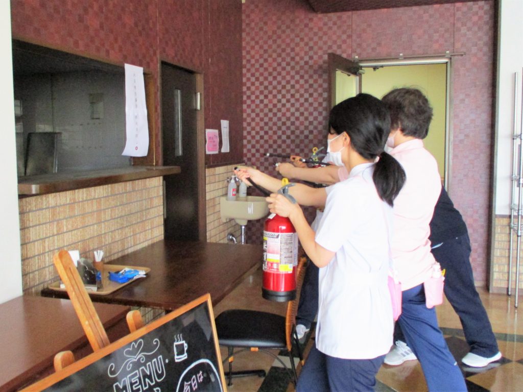 最後は、消火器の扱い方と散水栓の使用方法について説明を受けて終了。