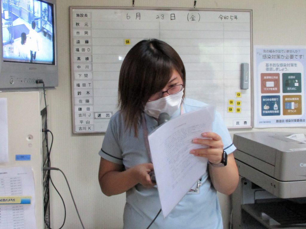 昨年同様コロナ禍のため、消防署参加の消火訓練や煙体験はなしということで非常に残念でしたが、6/23、火災発生時の通報訓練や避難誘導訓練を実施しました。
