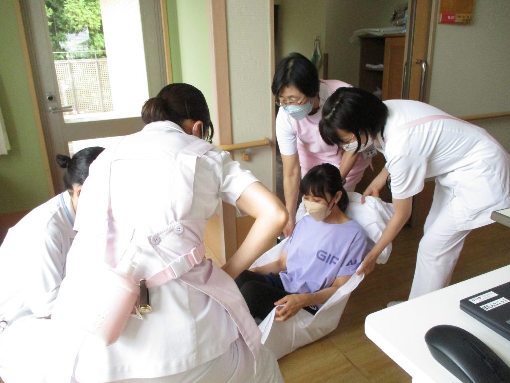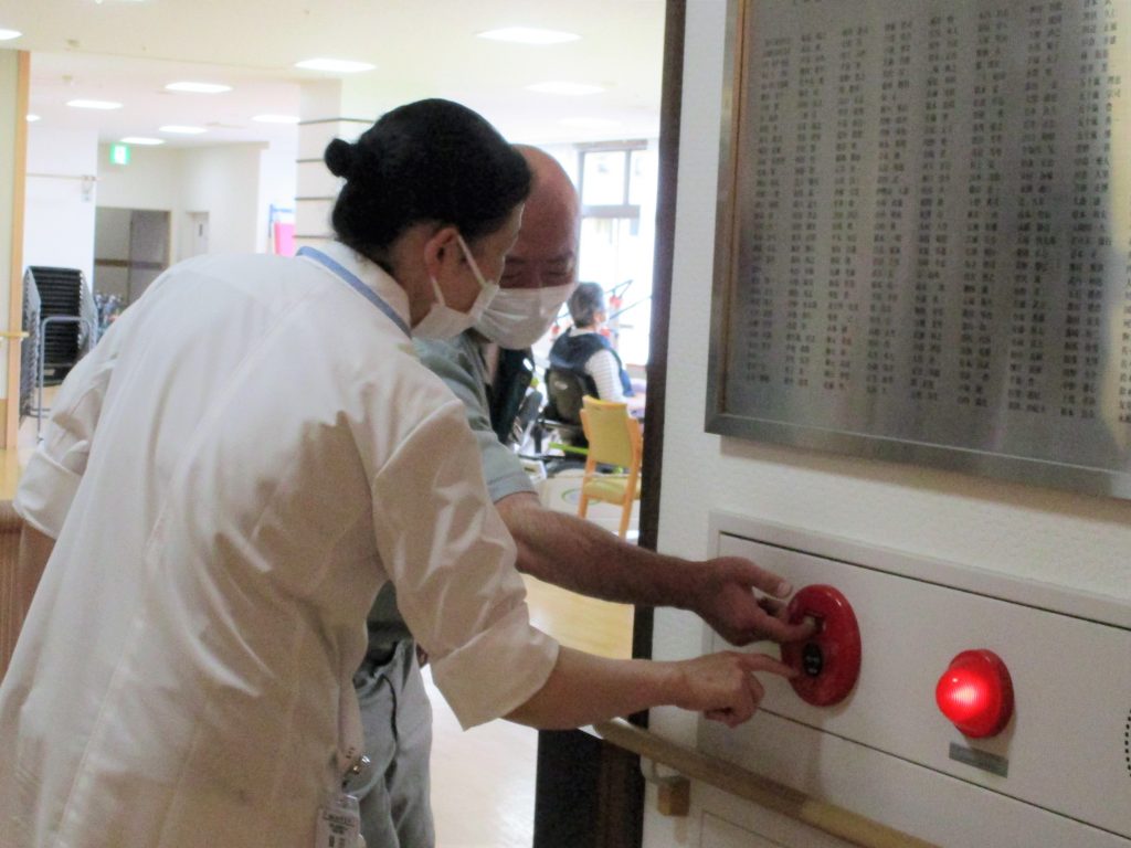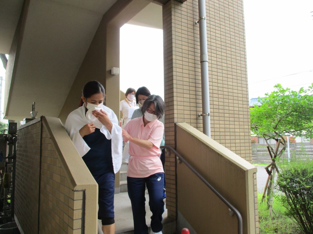 非常階段からの避難は、利用者様に扮した職員を誘導。