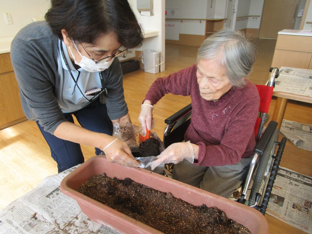 暖かい日が続いたため、今年は例年より少し遅めになりましたが、秋~来春の花壇の植え付けをおこないました。