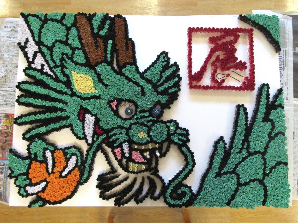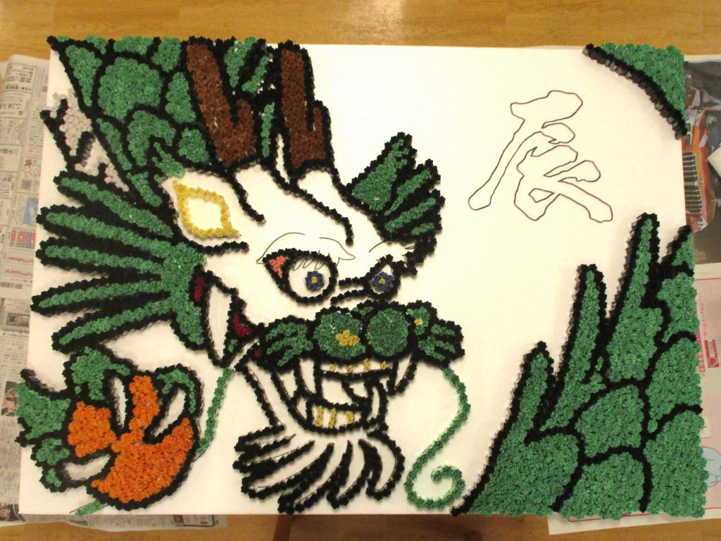 カラーダンボールを使用して辰の貼り絵制作をおこないました。