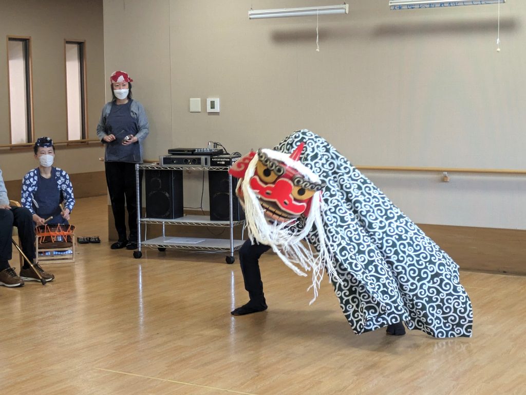 コロナ禍となってからは、外からお囃子の会の方々をお招きするのが難しくなったため、獅子舞も自前でやってまいりました。