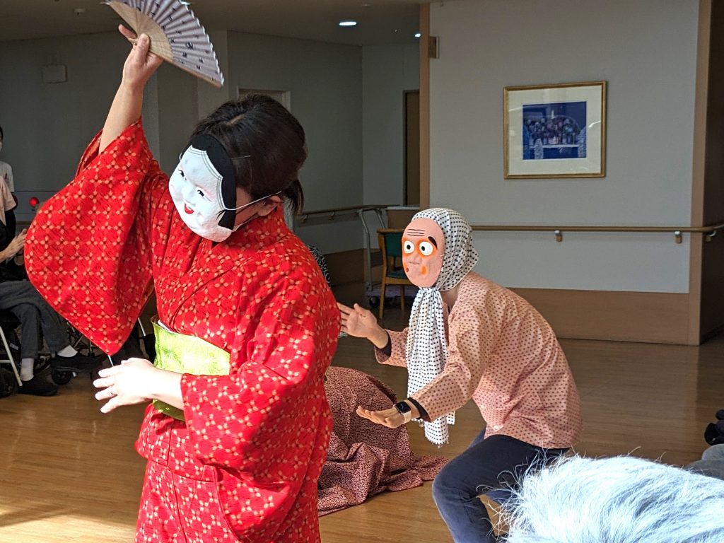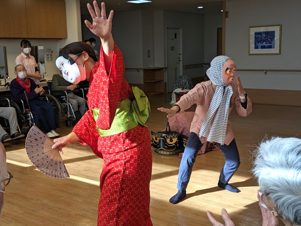 皆様、おかめとひょっとこのひょうきんな動きに大盛り上がり。