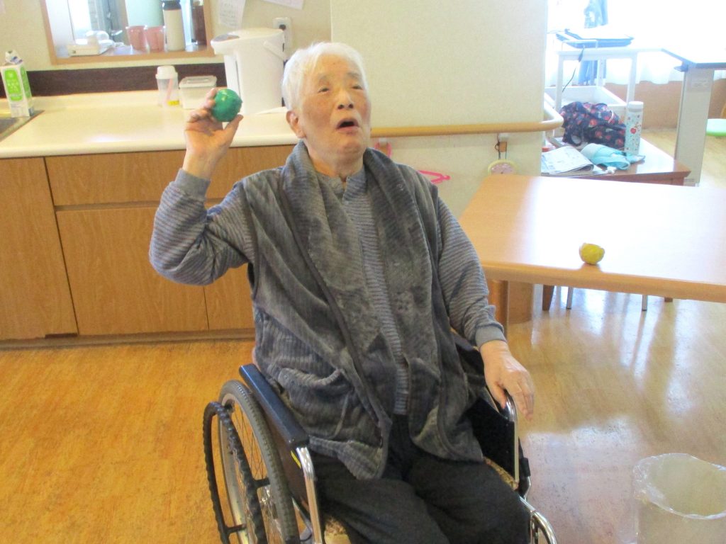 今年はゆりユニット、ぼたんユニットそれぞれの食堂を鬼がまわり、皆さんに豆に見立てたボールを投げてもらいました。