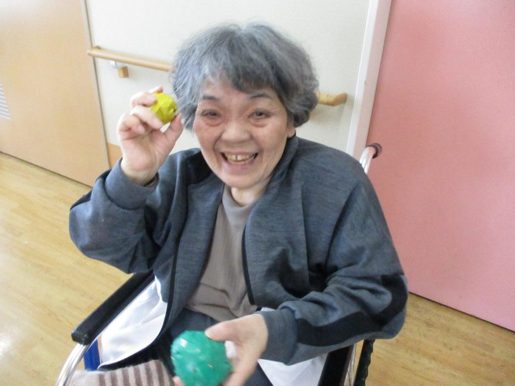 待ち構えていた利用者様は次々と豆ボールを投げます。