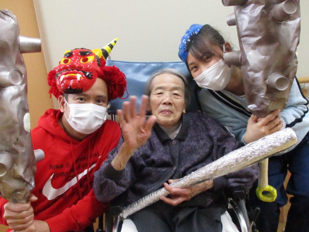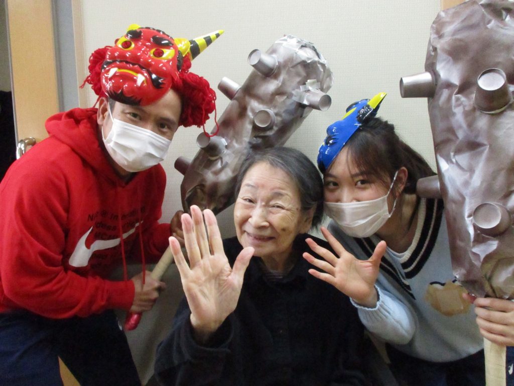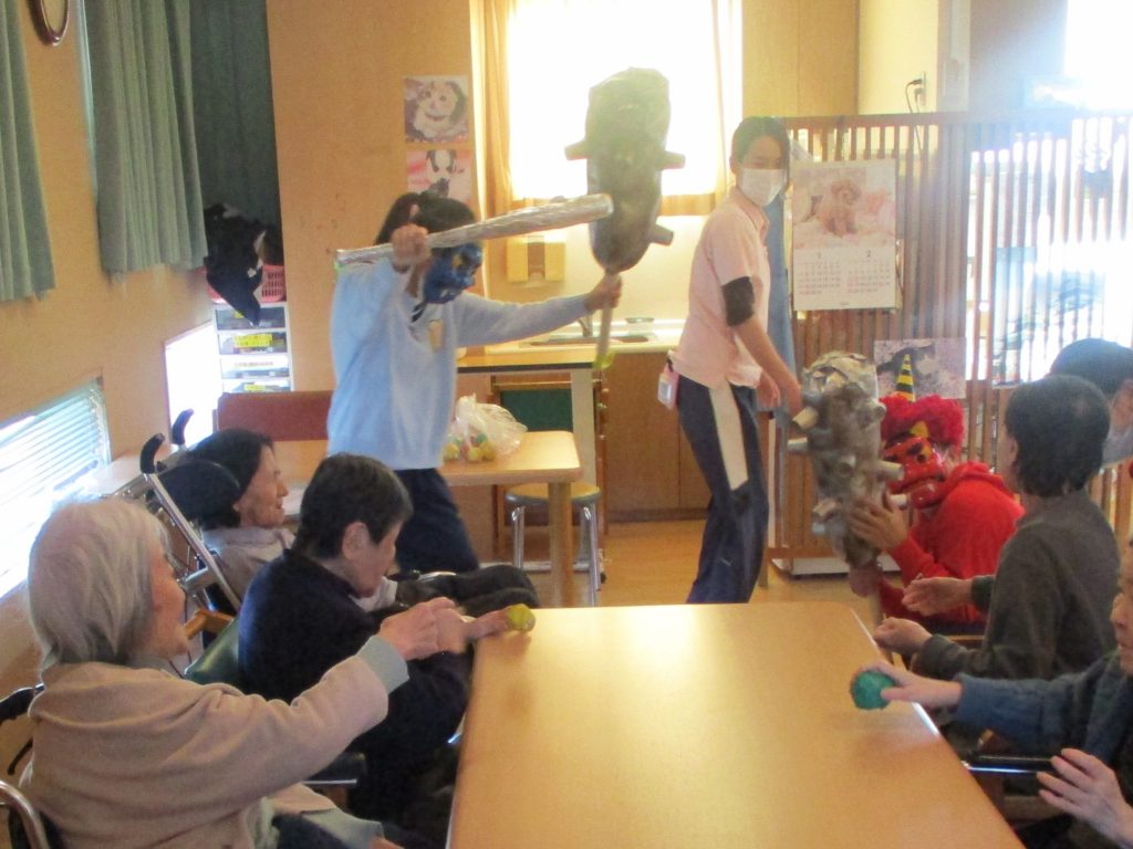 さて、時を遡ることもう少し前、2月3日の節分の日の、ゆり・ぼたんユニットの豆まきの様子をご紹介します。