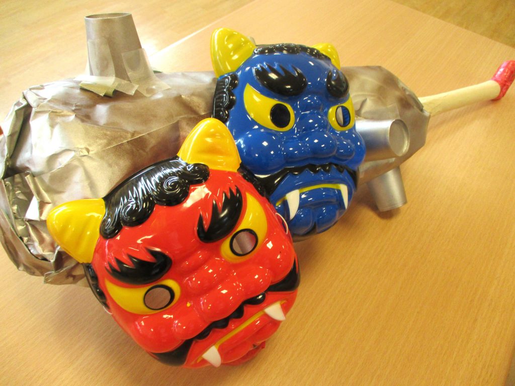 写真を撮り終わった後は、鬼がちゃんと床を掃除し、豆ボールを回収し持ち帰っていきました。