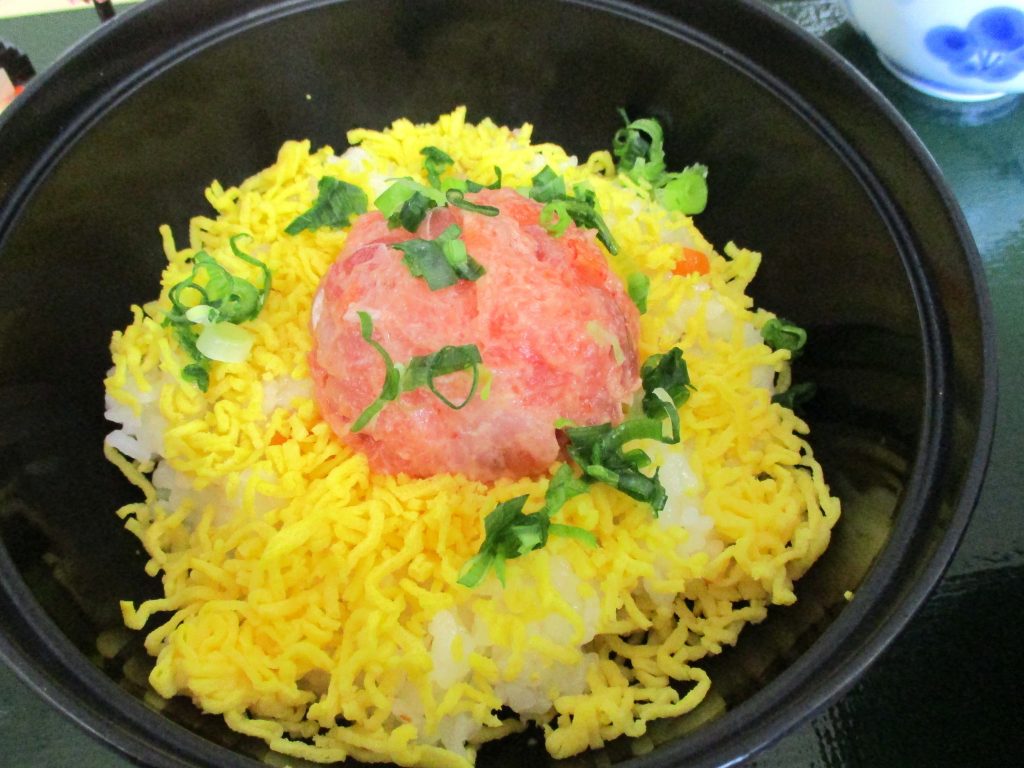 ‘ばらちらし’のように海鮮を角切りで散らしたものをお出しする年もありますが、今年はネギトロのせでした♬