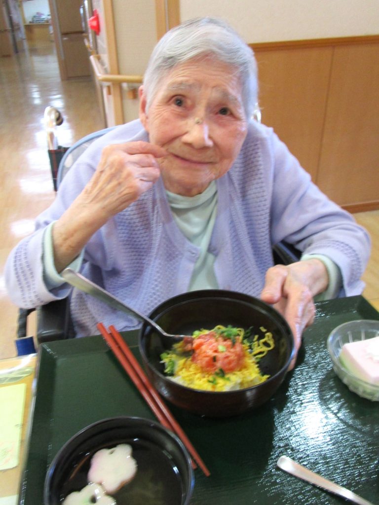 さて、そんなこんなで寒い中にも少しずつ春の訪れを感じるようになりましたが、先日3月3日は桃の節句にちなんで、行事食を提供しました。