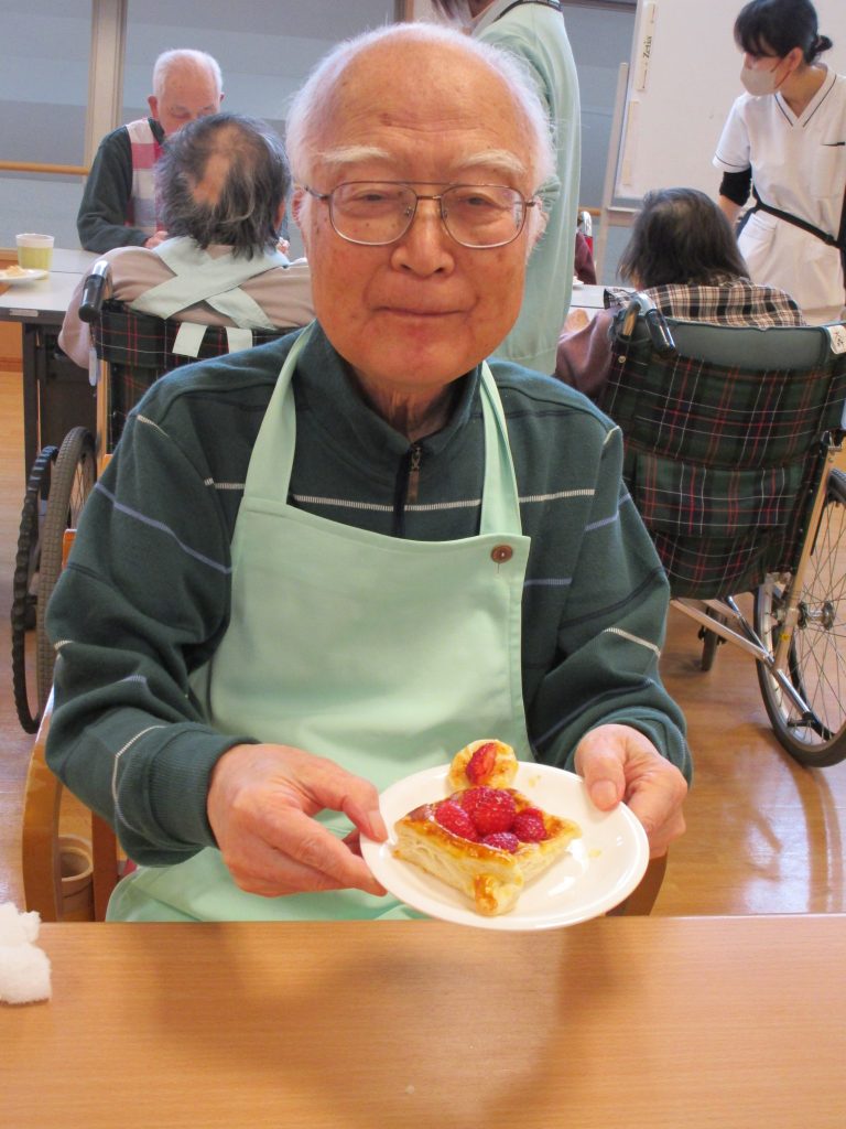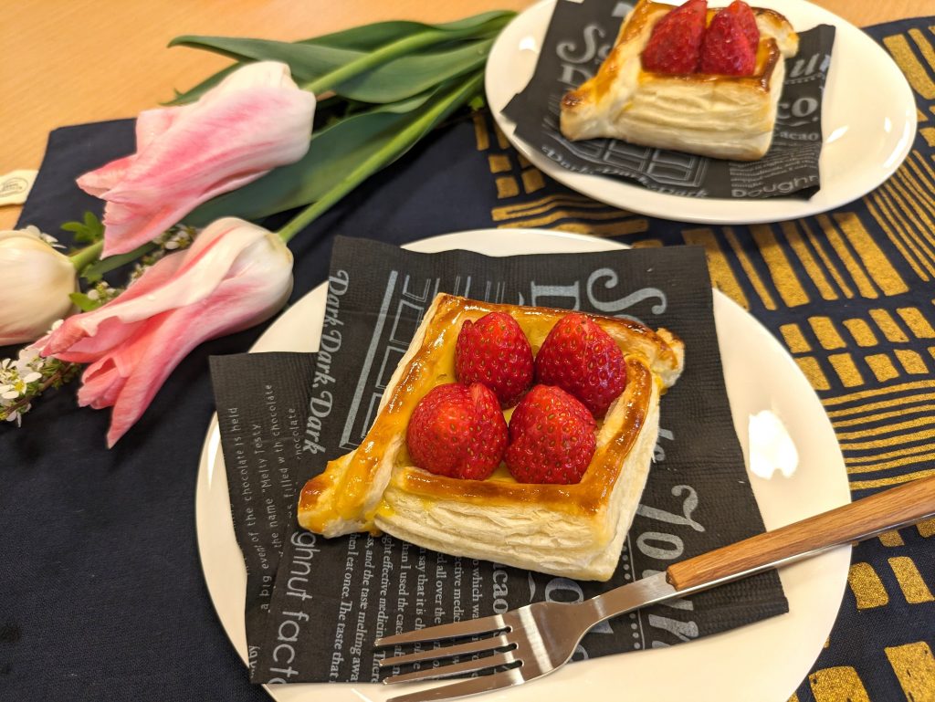 いちごの酸味とマッチし、カスタードパイもおいしくいただきました。