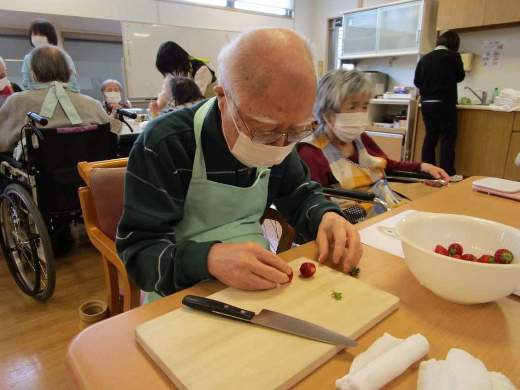 「パイ生地準備班」はまずいちごを洗ってヘタを取ります。