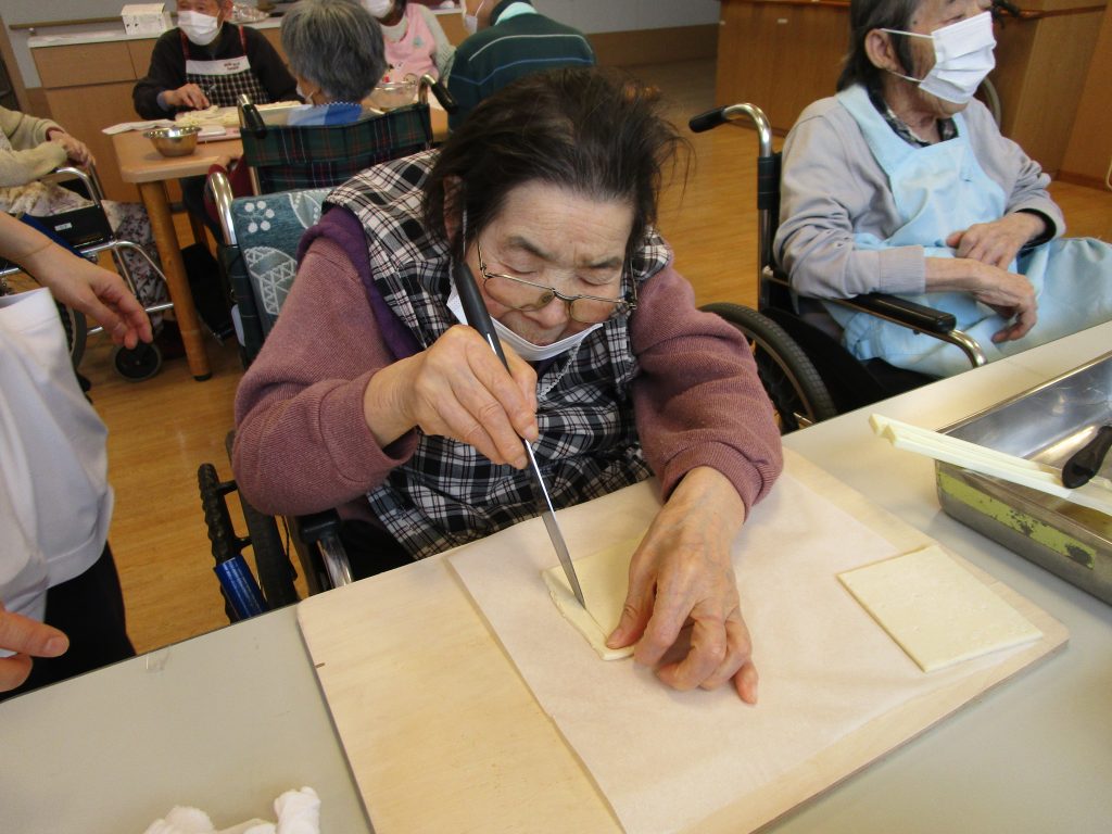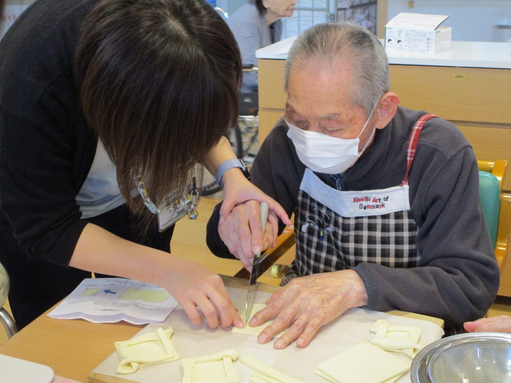 切り込みを入れたらくるんとパイ生地をひねって、おしゃれな土台を作ります。