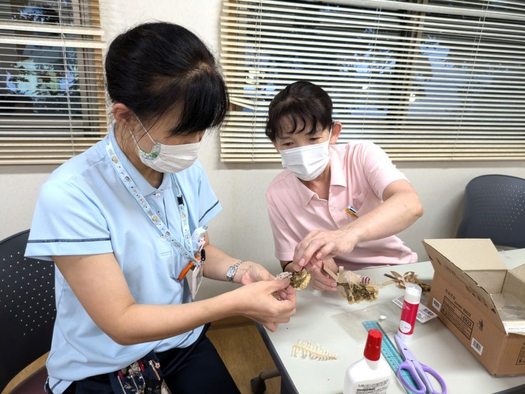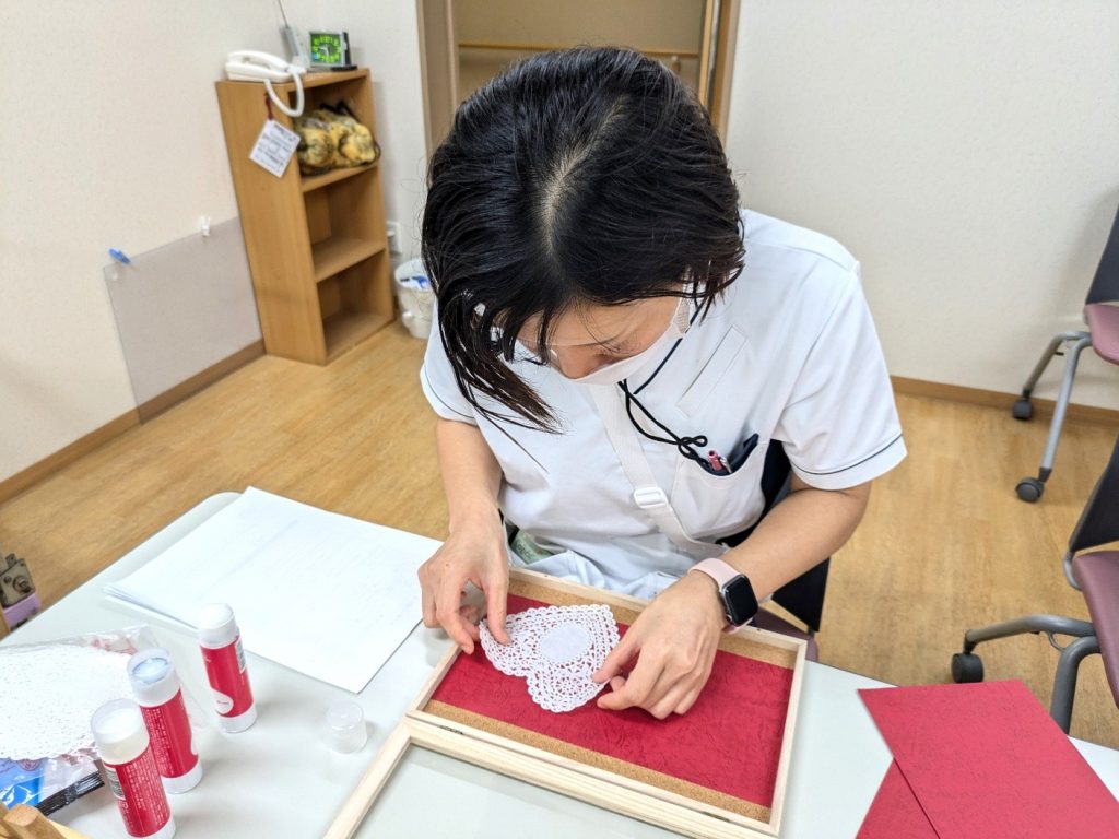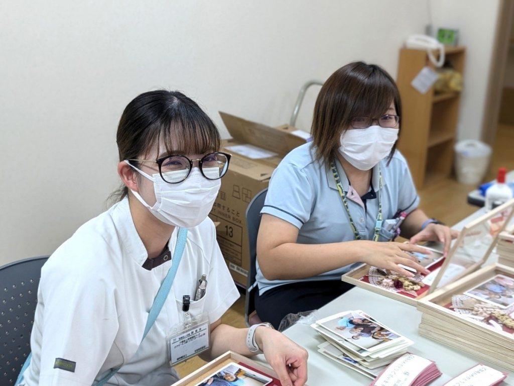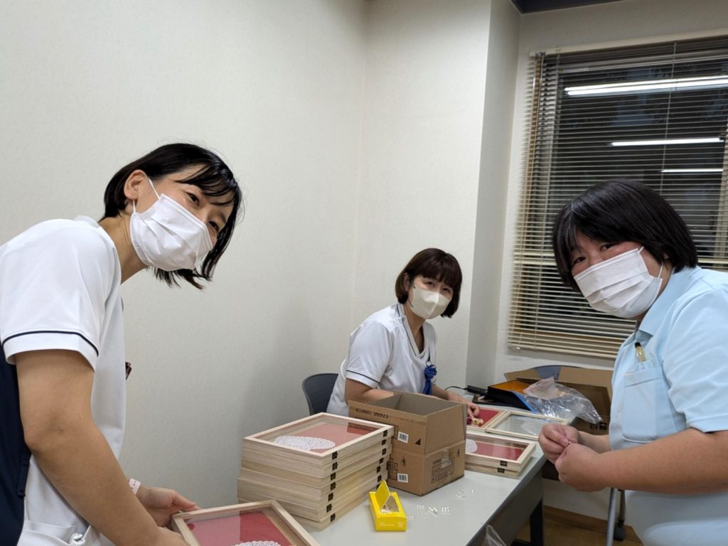 この日以外にも、入れ替わり立ち替わりたくさんの職員が協力してくれ、今週で無事、全員分の祝い品の作成が終わりました( ^ ^ ♬