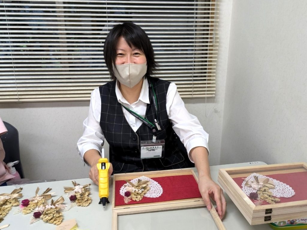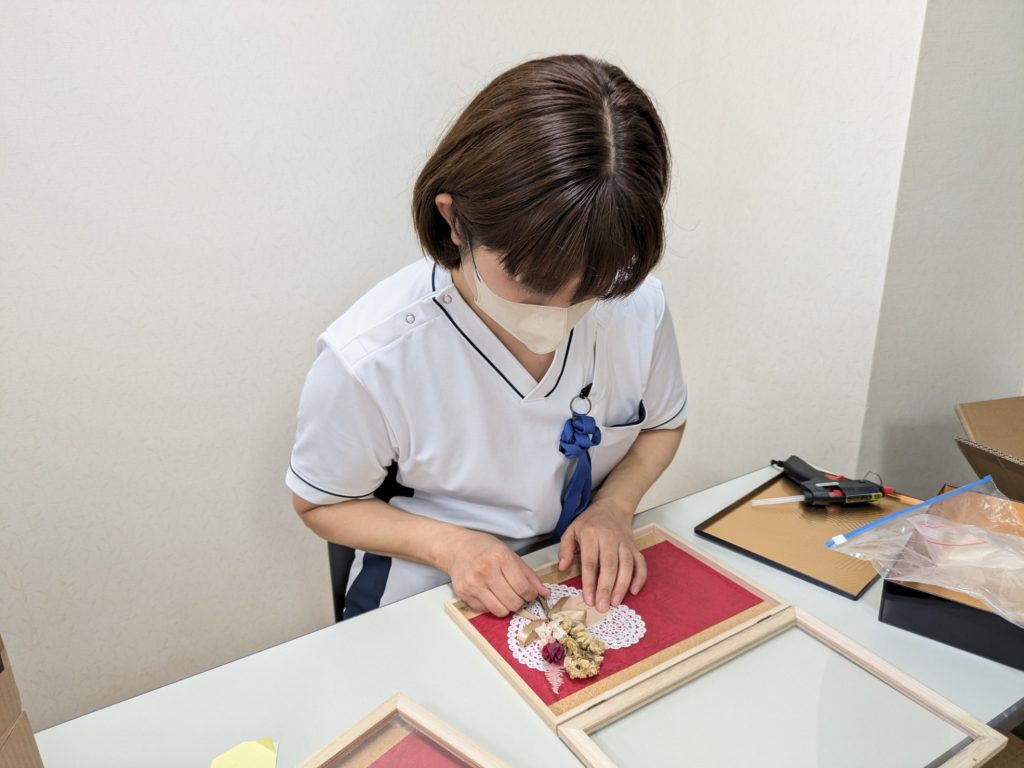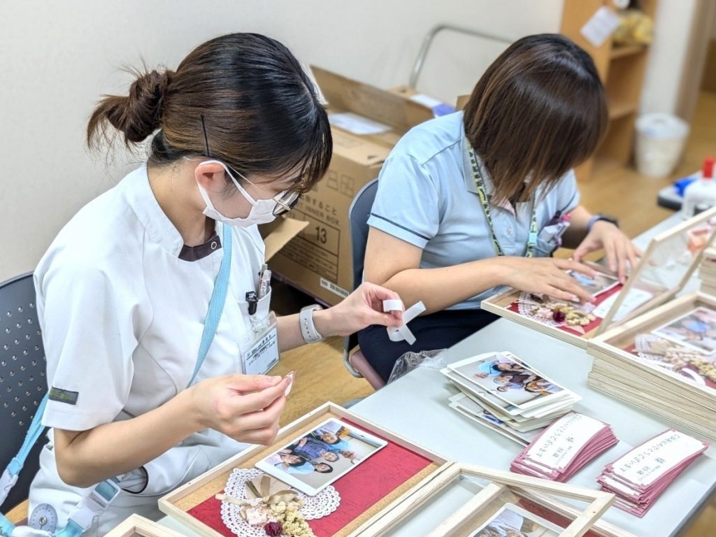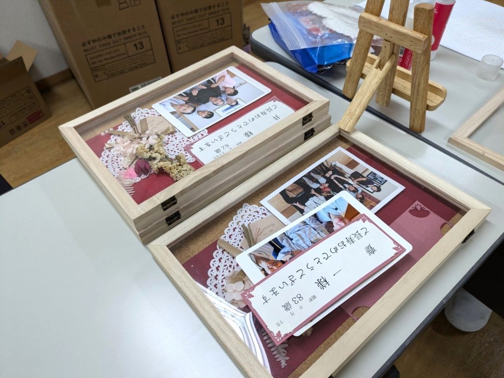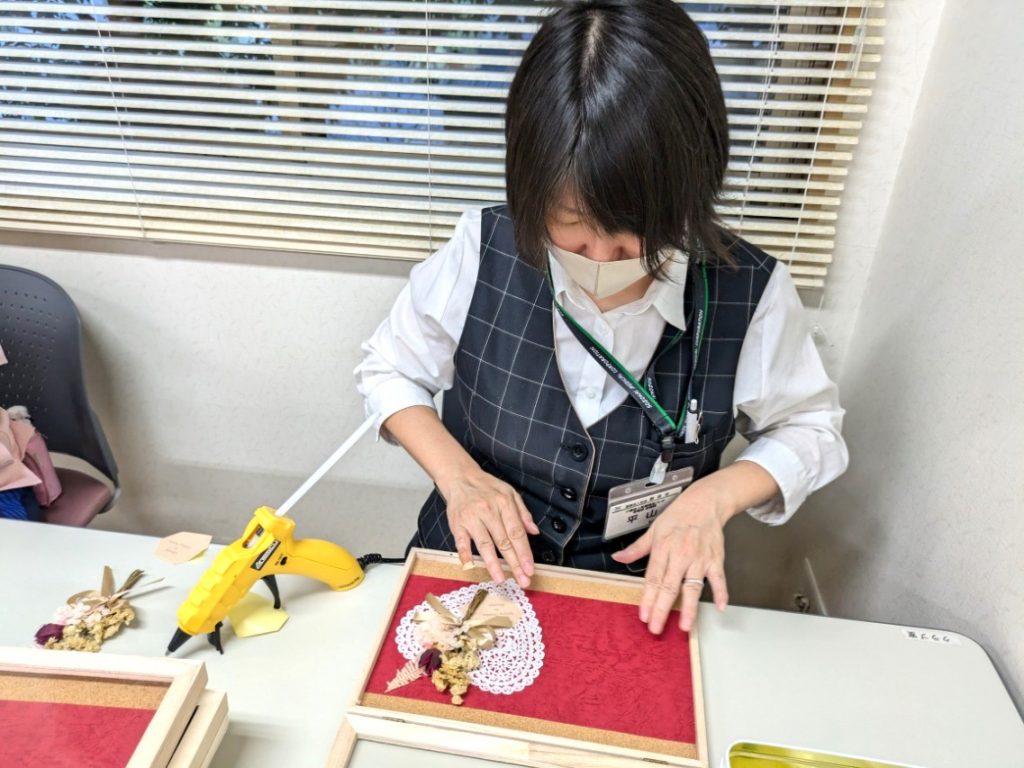 9月の1週目は「敬老祝い品 作成week」として、夕方に職員が集まって写真たての作成をおこないました。