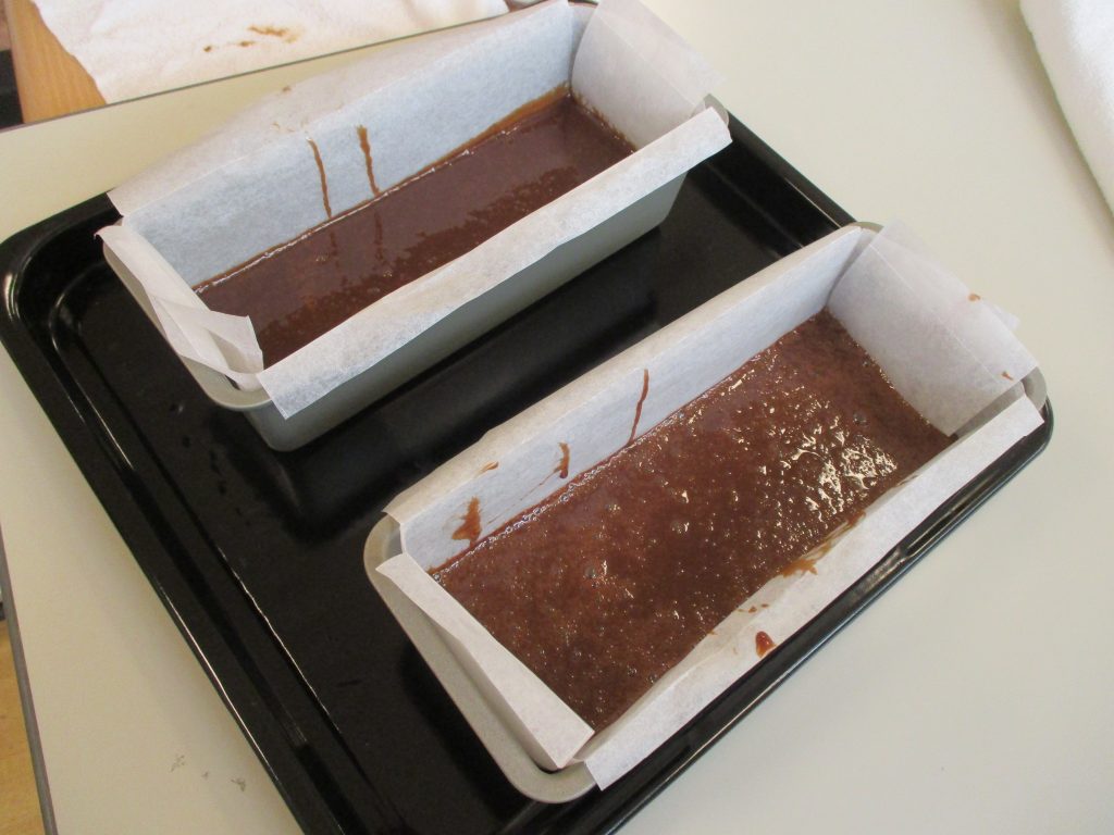 はじめにガトーショコラの生地をつくり、焼いている間(25分位)に市販のスポンジケーキに抹茶生クリームを絞ったツリーケーキを作る予定です。