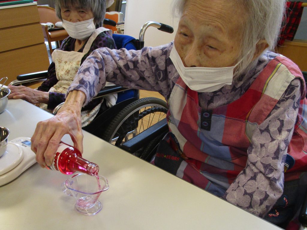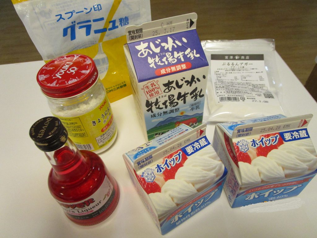 杏仁豆腐を冷やしている間にさくらゼリーを作っていきます。
