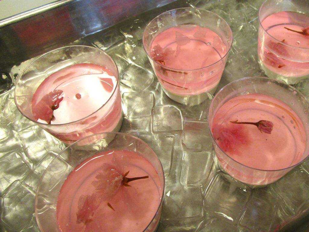 これに桜の花の塩漬けが加わって、杏仁豆腐とさくらゼリーの2層仕立てのデザートを作ります!!