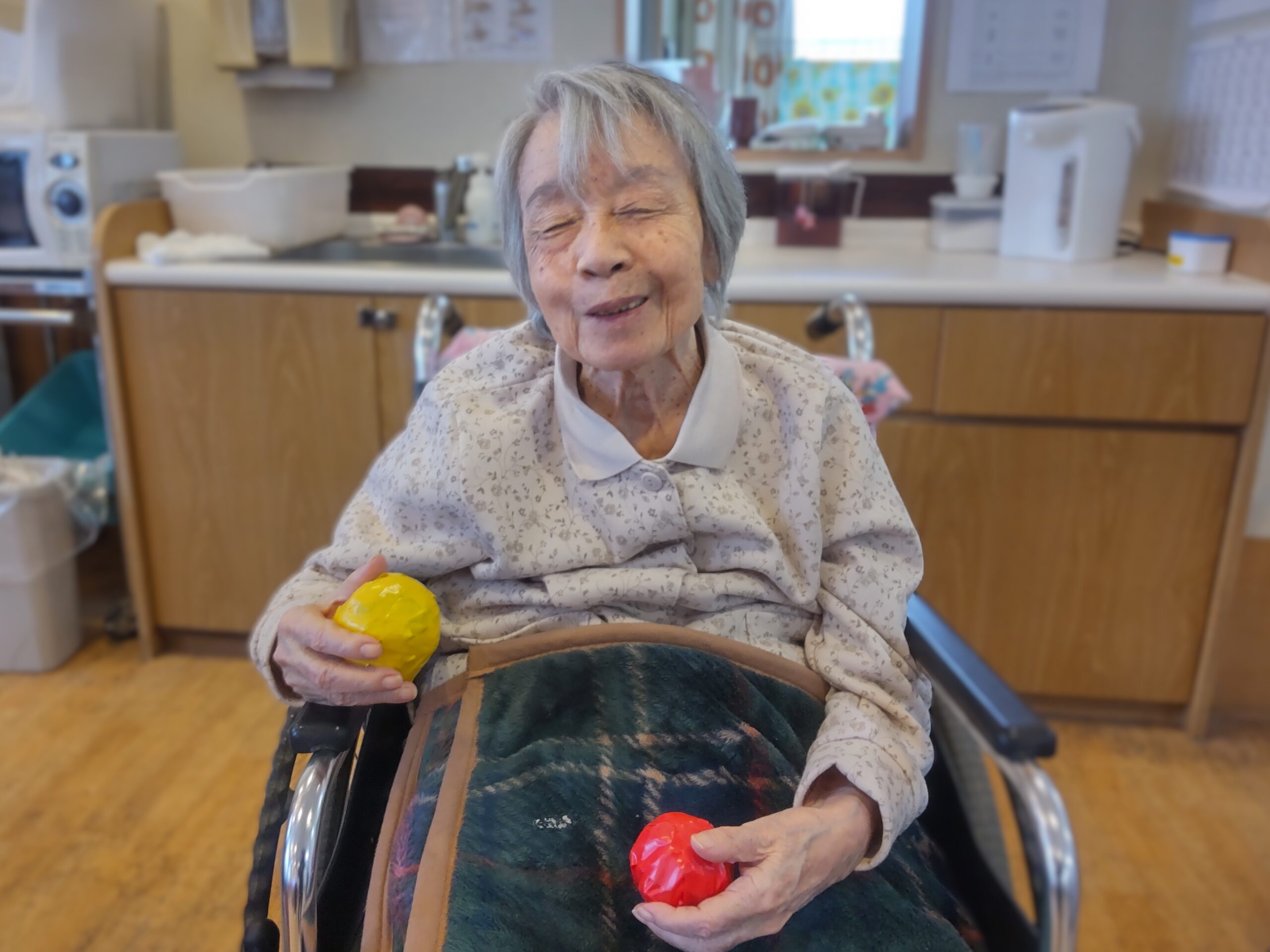 豆ボールを手にし、鬼の登場を今か今かと待ち構えていますよ~♪