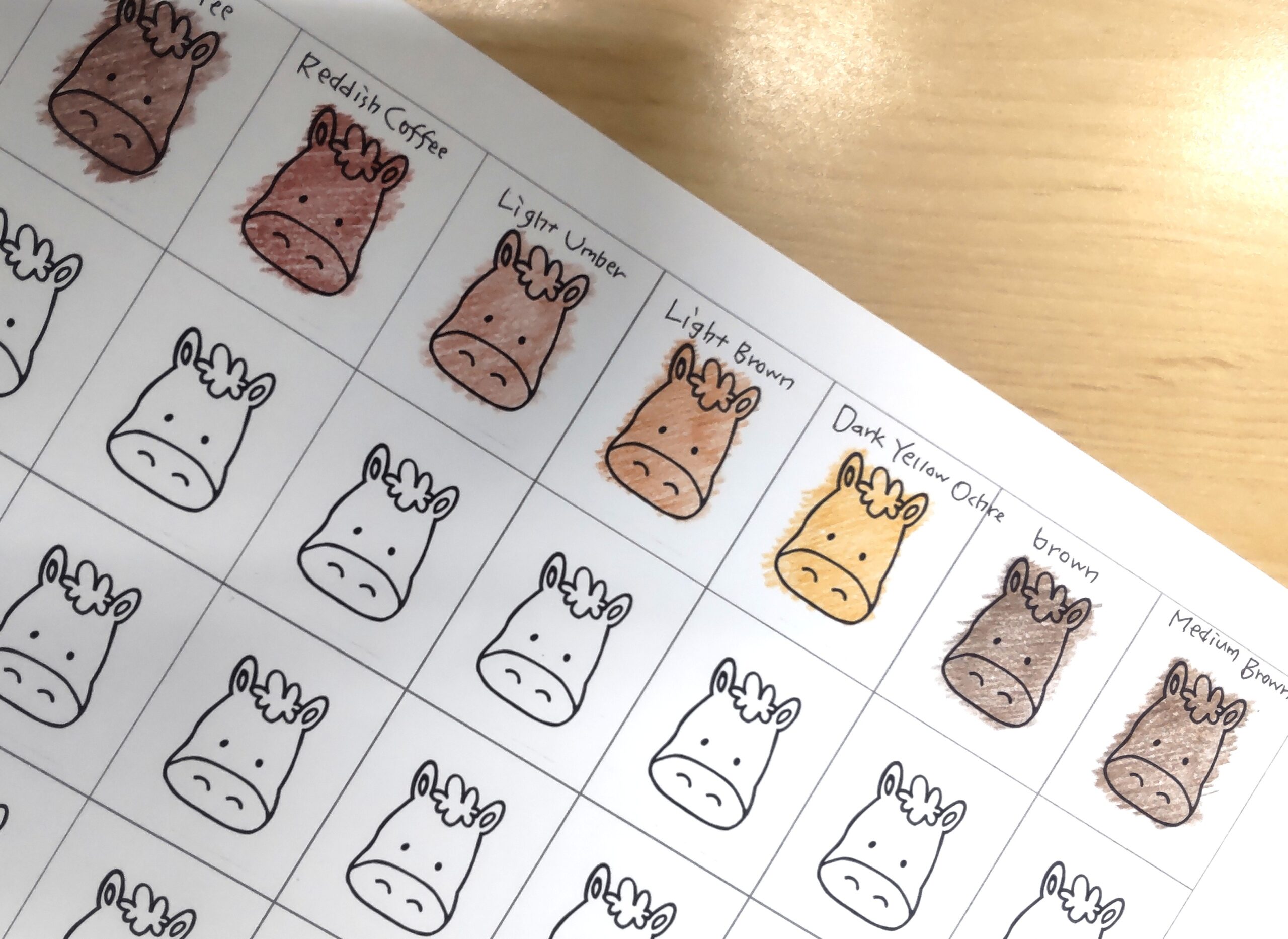 小さな馬の顔の絵に、少しずつ色の違う茶色で色をつけ、それを切り貼りして大きな馬の絵を作っていきま~す♫