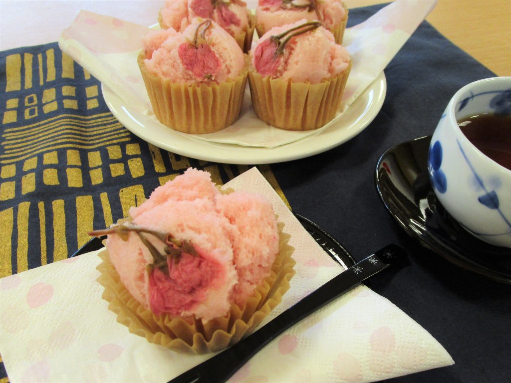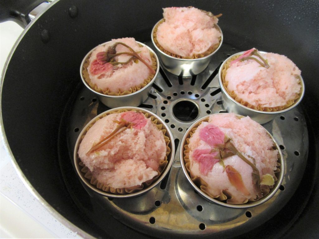 甘さ控えめ、さくらの風味豊かな蒸しパンができましたが、