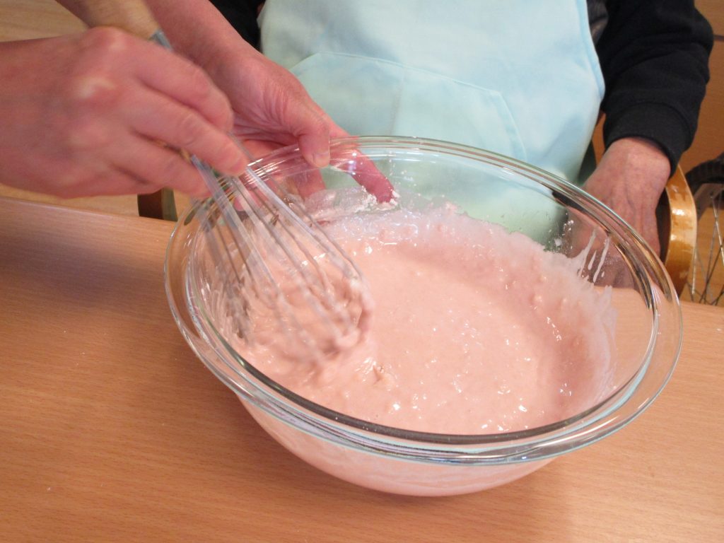 さくらパウダーを入れると、生地自体がほのかなピンク色になりました。