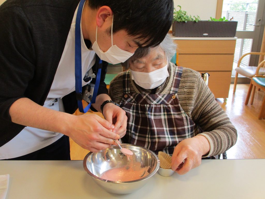 4月の調理クラブは、この時期に是非とも食べたいおやつ!!「さくら蒸しパン」を作りました。