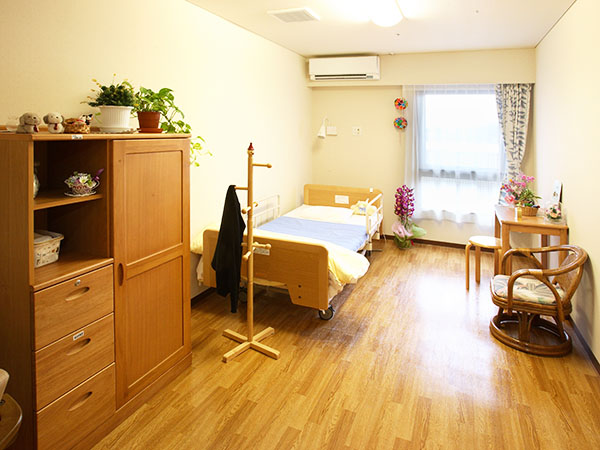 木目調で統一された家具と温かみのある照明で、心地よい空間を提供します。備え付けの家具のほか、今までご自宅でお使いになっていた馴染みの家具を置くことも可能です。