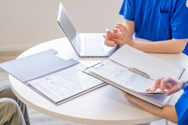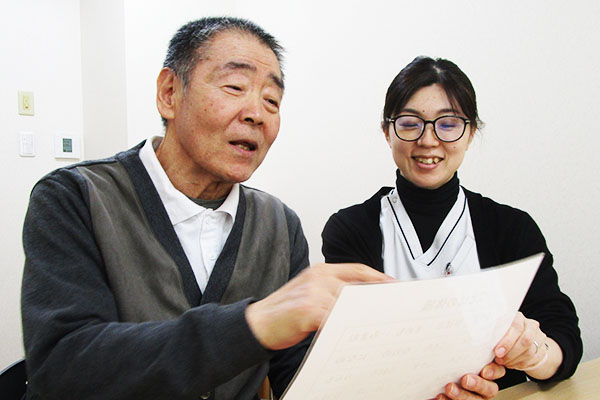 ご本人様のお身体の状態や生活のご様子等(生活歴・病歴、在宅復帰への課題等を含む)についてお伺いします。お申込み書類はご本人様の状態等、詳しくお話をお伺いした後にお渡ししています。