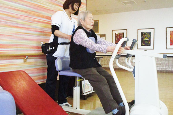 また、できるだけ身体を動かす機会を作るために自主トレーニングの提示やマシーントレーニングを提供しています。