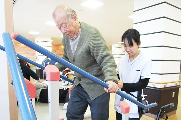 療法士が個々の利用者様が日常生活で困っていること、希望などをうかがい、身体の状態に合わせてリハビリテーションを提供しています。