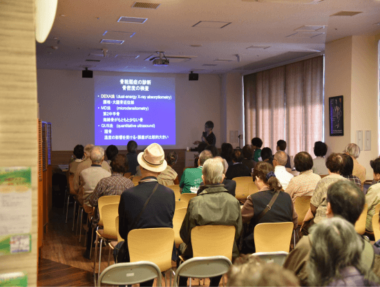 沢山の地域住民の皆さんと交流できる年1回のイベントです。医師の講演会を中心に演奏会や体力測定など様々な催しものを実施しています。およそ800人の来場があるイベントです。