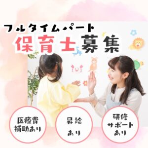 パートの保育士募集!「あたたかい保育」が魅力の病院敷地内の保育所です。・アットホームな雰囲気で働きやすい☆・研修制度充実で成長をサポート!・駅から徒歩12分。でも駐車場は無料です!